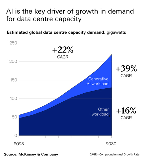 Millions of servers are running 24/7 to power the global AI data centre boom. McKinsey research suggests meeting this demand will require c.US$6.7 trillion in global capital expenditure by 2030.